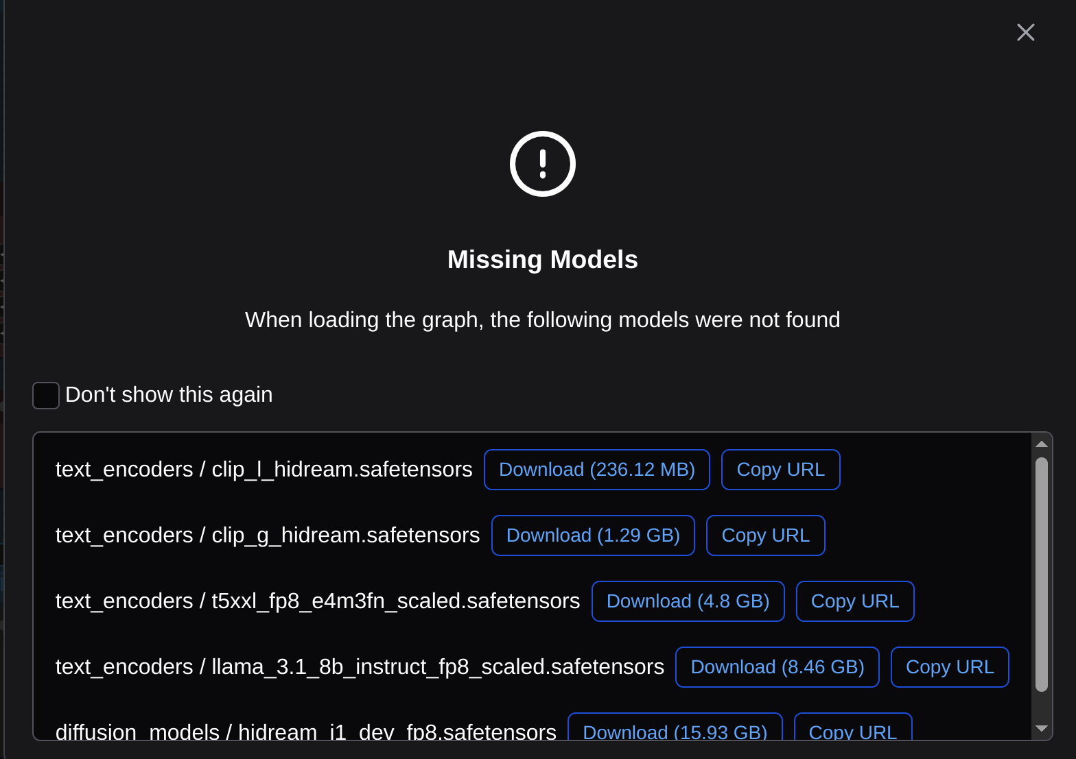 Sstarting with diffusion_models it shows the file should be in .diffusion_models. cd into the diffusion_models folder and use wget to download the file, or we can just write a script to get all the missing models in one go instead. For Hidream the missing files listed above