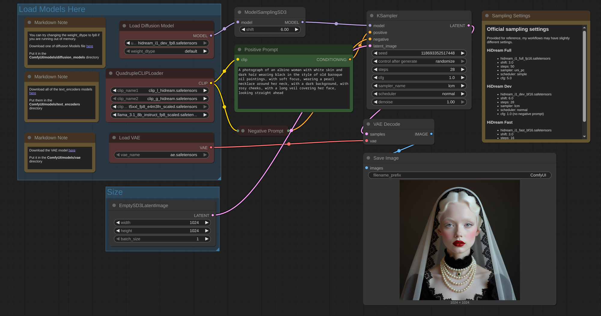 Save the script and make it executable. Now refresh the web page, or restart from the comfuiUI manager tab, or stop and start main.py and now you have a baseline setup of Hidream for making extremely lifelike human representations. Lets run the default hidream workflow