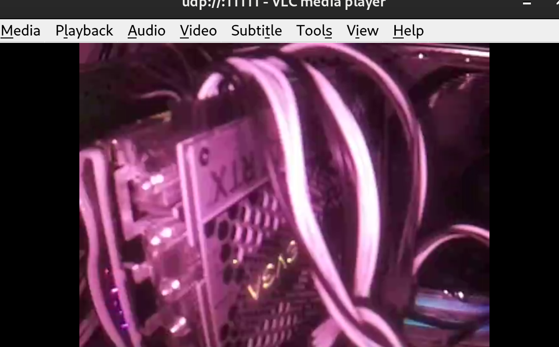 Now we have streaming video and its perfectly good to go for this purpose of monitoring the nvidia cards over limit power connector light as they have a habit of turning the power connectors and the board into melted garbage if they are bent a little too much or daisy chained. Rough and dirty but cant be beat to get a result up and running to build on top of.